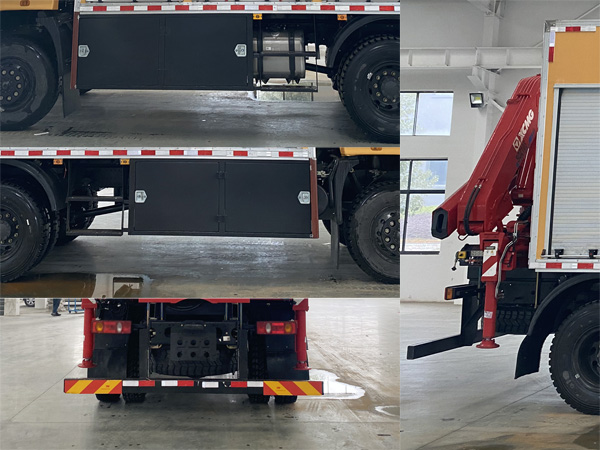其它:1、該車(chē)主要用于搶險(xiǎn)救災(zāi)、賽事活動(dòng)等的應(yīng)急照明支援;主要專(zhuān)用裝置:照明系統(tǒng),發(fā)電機(jī)組,吊機(jī)等;廂體頂部密閉,不可開(kāi)啟。2、側(cè)防護(hù)為裙邊結(jié)構(gòu),材料Q235;后防護(hù)材料采用Q235,螺栓連接,截面尺寸125×60mm,下邊緣離地高485mm。3、ABS型號(hào)/生產(chǎn)廠(chǎng)家:3631010-C2000/東科克諾爾商用車(chē)制動(dòng)系統(tǒng)(十堰)有限公司。