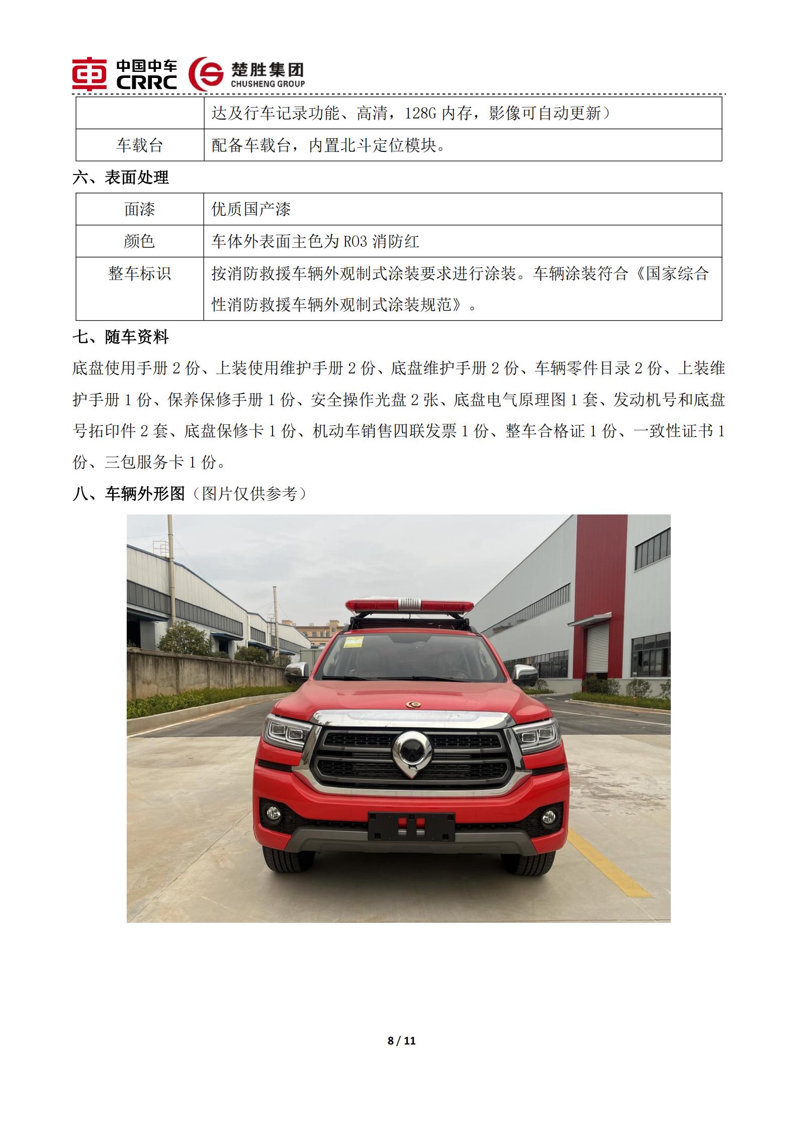 楚勝牌 CSC5030TXFQC10/CC6 型器材消防車