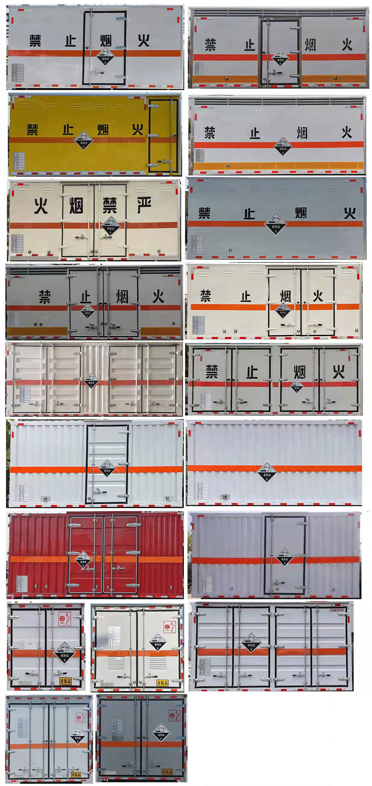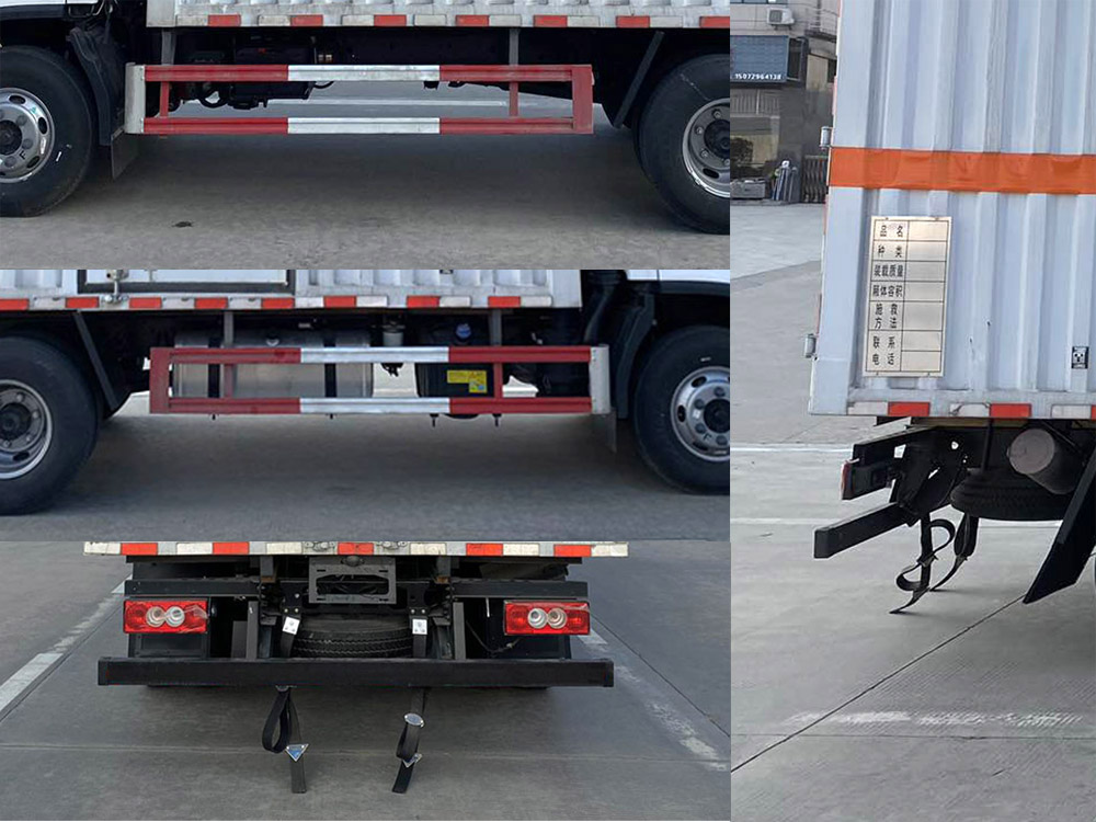 其它:1、該車適用于運輸危險品。廂體頂部封閉不可開啟。運輸具有獨立容器(瓶)包裝的物品,運送危險物品類項號:8。2、側,后防護材料均為Q235,螺栓連接;后防護截面尺寸100×50mm,下邊緣離地高410mm。廂體側面選裝開門型式及位置,選裝不帶側開門,選裝瓦楞板結構;選裝百葉窗。3、隨底盤選裝排半駕駛室,選裝導流罩。僅選用排氣管前置、限速裝置(限速80km/h)、前輪盤式制動及子午線輪胎的底盤;轉向輪裝備輪胎爆胎應急防護裝置。安裝帶衛(wèi)星定位功能的行駛記錄儀。ABS系統(tǒng)型號:ABS-VI.E;生產企業(yè):廣州瑞立科密汽車電子股份有限公司.ABS系統(tǒng)型號:ABS-E;生產企業(yè):威伯科汽車控制系統(tǒng)(中國)有限公司.ABS系統(tǒng)型號:ABS8.8 ECU 24V,生產企業(yè):東科克諾爾商用車制動系統(tǒng)(十堰)有限公司。發(fā)動機/油耗值(L/100km)對應關系為:CY4SK261/16.09,D30TCIF1/16.19,F2.8NS6B156/15.39,F3.8NS6B156/14.90。可選裝ETC車載裝置。