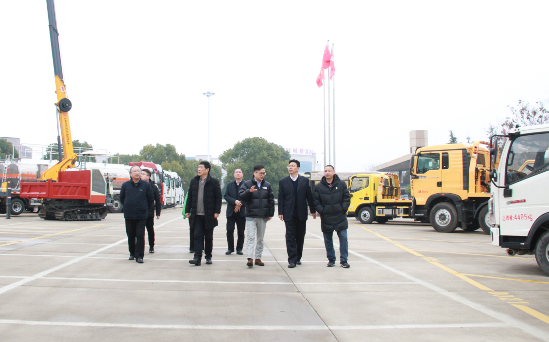 張樹中總一行在董鳴勇總及領導班子的陪同下參觀了公司核心車輛展示區,罐式車生產線、自卸車自動化焊接生產線、備料中心自動化生產線以及應急裝備車輛生產線,并在會議室進行了交流座談。