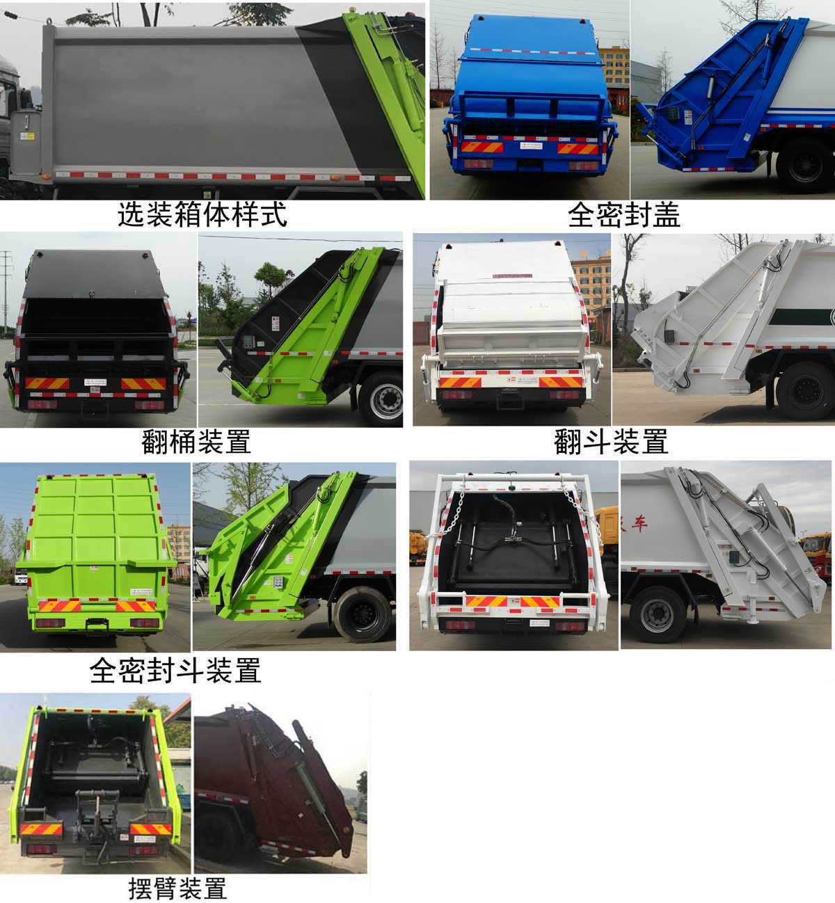 | 配置 | ABS系統(tǒng)**器生產企業(yè)/型號為威伯科(上海)管理有限公司/4460046300;選裝EBS,EBS系統(tǒng)**器生產企業(yè)/型號為威伯科(上海)管理有限公司/EBS3。該車型可選裝ETC車載裝置。該車可選裝方形或弧形箱體,選裝全密封蓋裝置,選裝爬梯。選裝后部工作裝置整車長度/軸距/后伸對應關系為(mm):①無翻轉機構時8730/4500/-,8930/4700/-。②翻桶裝置、半密封裝置9130/4500/400,9330/4700/400。 ③全密封斗裝置、擺臂裝置8930/4500/200,9130/4700/200。隨底盤選裝駕駛室。發(fā)動機/油耗值(L/100km)對應關系為:WP4.6NQ220E61/24.97; WP6H245E61/25.5.側防護采用Q235,螺栓連接;后防護由專用裝置替代,下邊緣離地高:500mm;專用功能及裝置:該車主要專用裝置由箱體、壓縮系統(tǒng)組成,用于垃圾的收集與清運;僅選用軸距4500mm,4700mm.選裝前部、后部組合燈具。選裝電瓶箱、儲氣筒、尿素罐的外觀型式和布置位置,選裝污水箱位置。 | ||