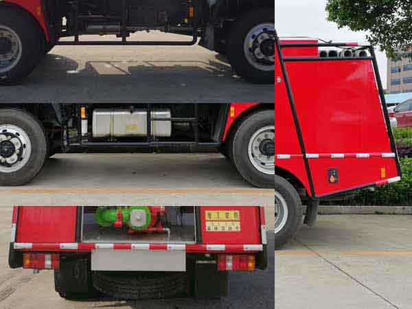 水罐容積:2.1立方米,水罐尺寸:2100×950×1100mm。ABS生產企業為廣州科密汽車電子技術股份有限公司,型號為CM4XL-4S/4K(4S/4M)。主要專用裝置有消防泵。根據GB7956.1-2014,該車采用越野底盤改制,防護裝置不適用。